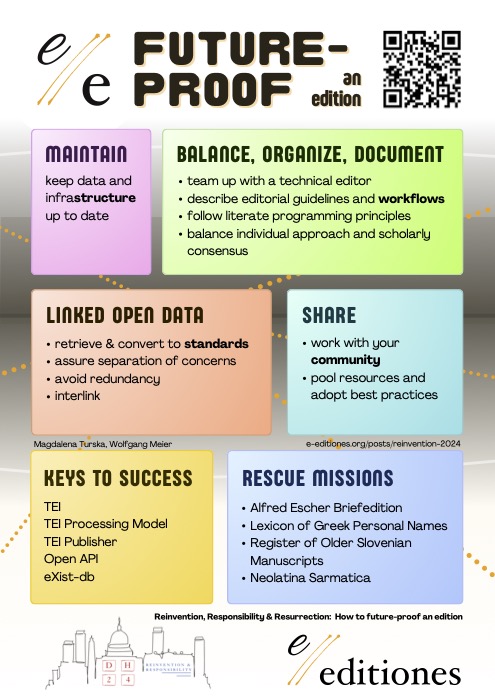 | As software developers and technical editors we find ourselves frequently called in to resurrect a project in danger of extinction. We will discuss experiences and solutions for such a reconstruction/reinvention process which led to creation of a future-proof open publication model based on standards, already implemented in many projects, including Swiss national infrastructure Sources Online. |