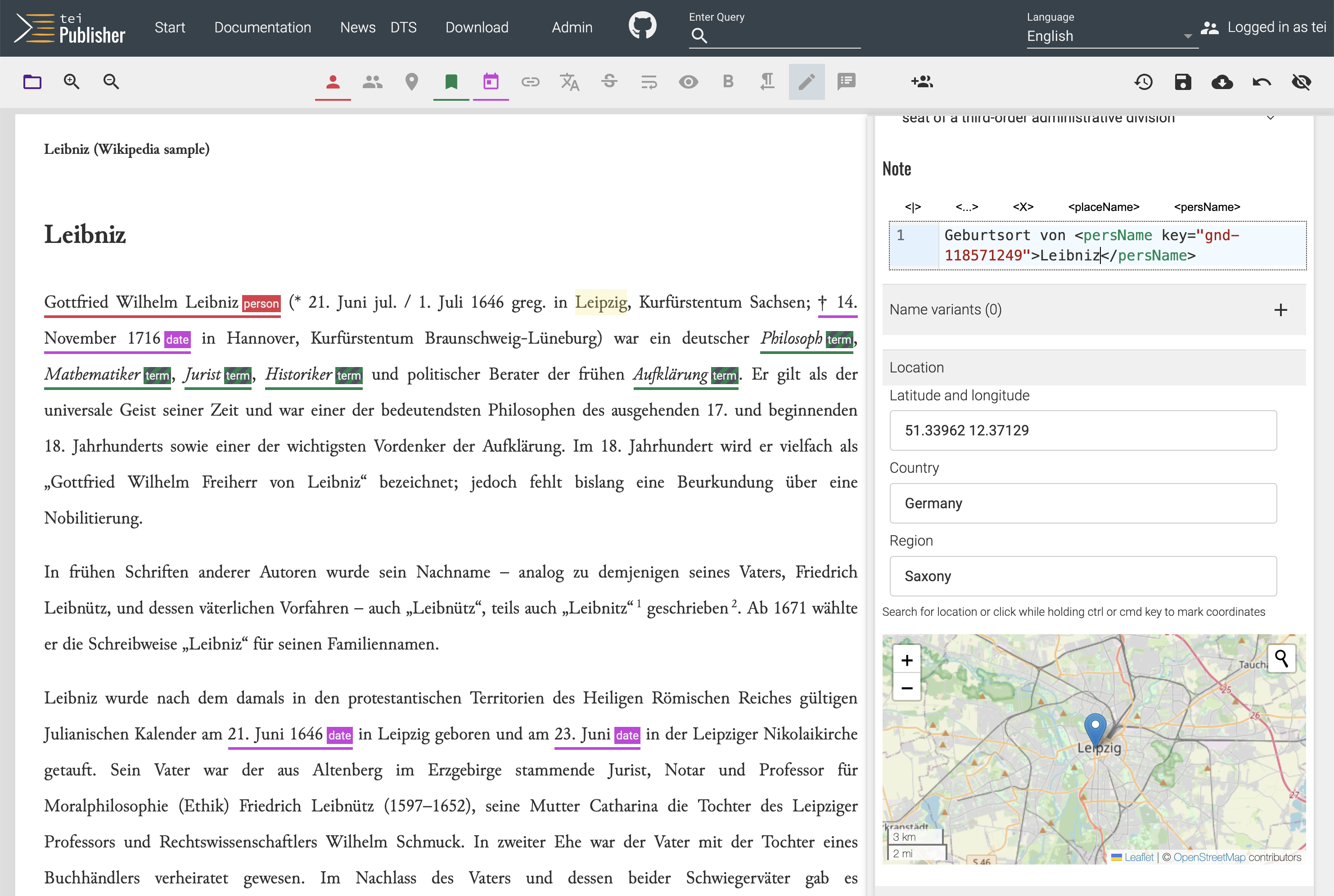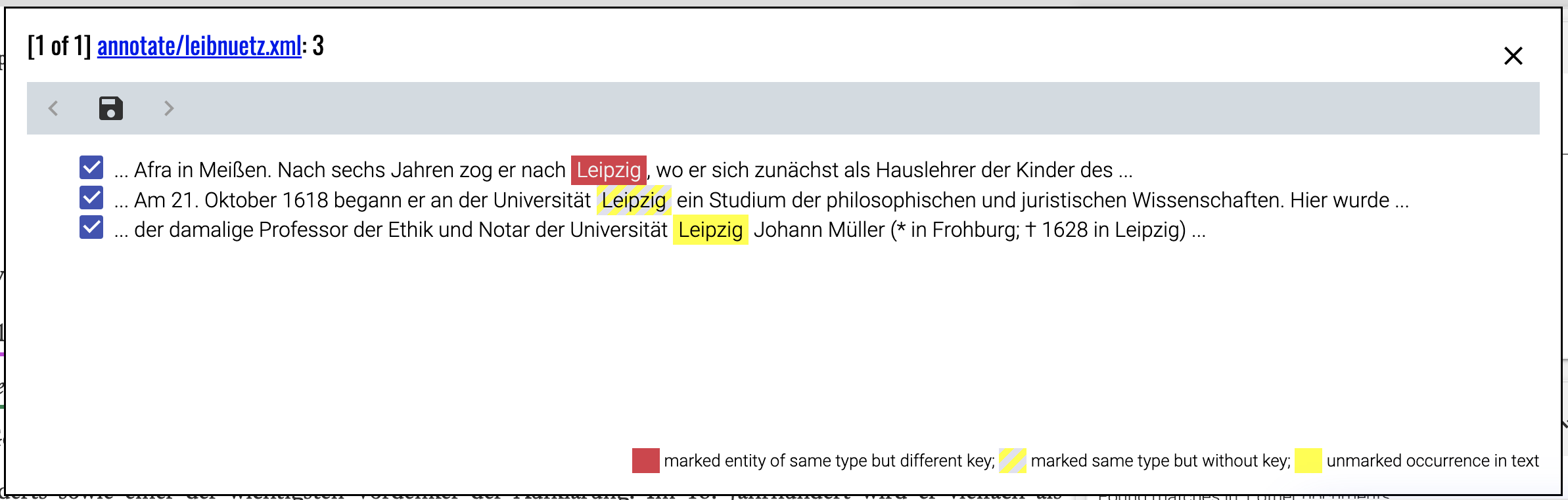 The new annotation editor boasts a new, more user friendly and ergonomic layout with additional capacity to add or edit registry entries from within the editor. Furthermore, a function to find potential matches in other documents for the current annotation and review them on the spot is a long awaited feature, which promises to speed up the editing process without compromising quality or consistency.